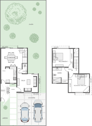El Modelo A cuenta con 2 recámaras, 1 baño completo y ½ baño de visitas, distribuidos en dos plantas que combinan comodidad y funcionalidad.