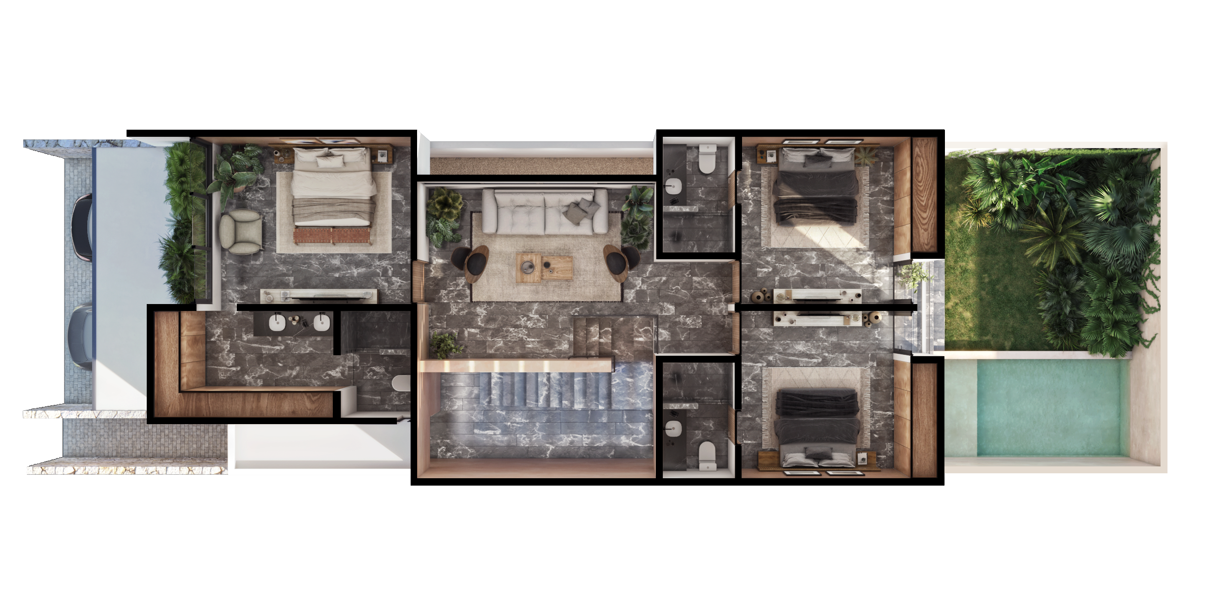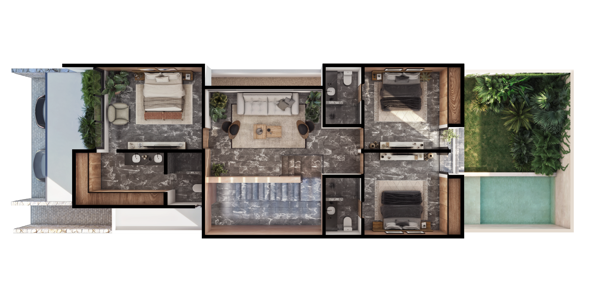 7 exclusivas viviendas con 2 modelos diferentes, cada una con distribución inteligente y detalles de lujo en cada espacio.